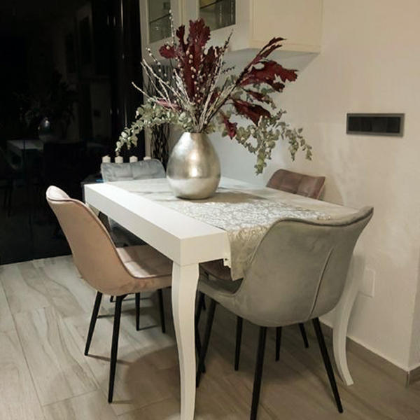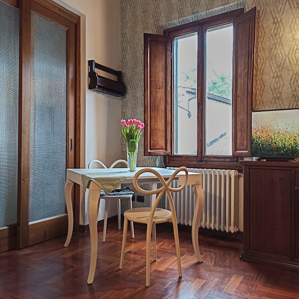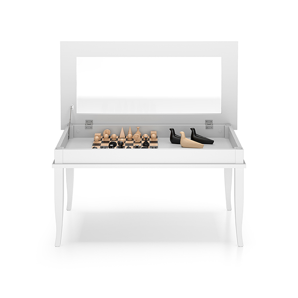 É un tavolo allungabile, elegante e particolare. Linee sofisticate curate nei dettagli che offre ospitalità a sei commensali ma che una volta aperto arriva fino ad otto posti a sedere.